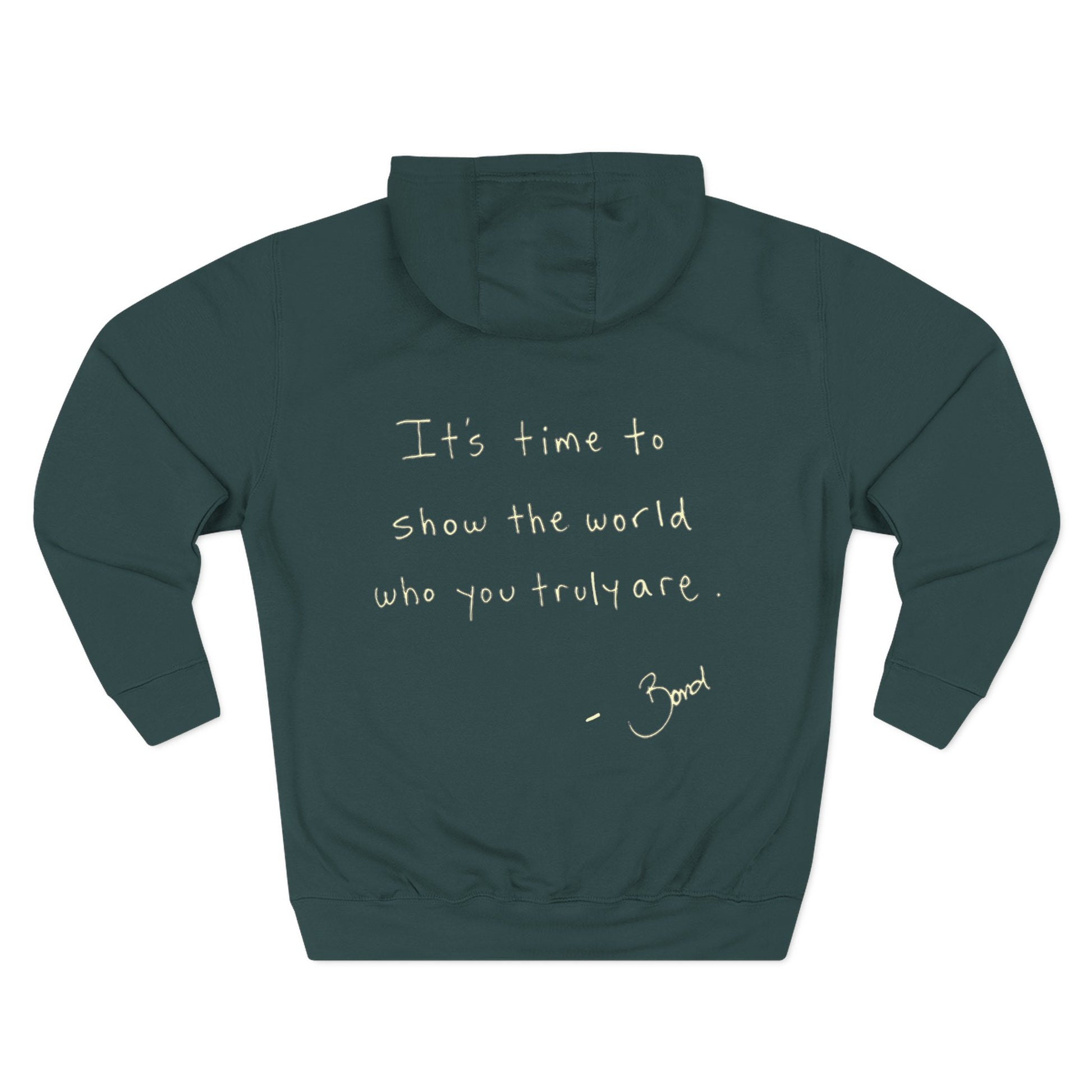 This medium-weight fleece hoodie feels like a quiet confidence you can wear. The soft three-end fleece and roomy kangaroo pocket make it a go-to layer for slow mornings, late-night walks, and studio sessions. Subtle stitched logos on the front and a handwritten-style affirmation across the back give it an intimate, lived-in character — like a friend’s note you reach for when you need a push. The adjustable hood, reinforced seams, and tear-away label keep things comfortable and low-fuss. It settles into your rotation and stays true to size, so you can grab it and move out the door with intention.