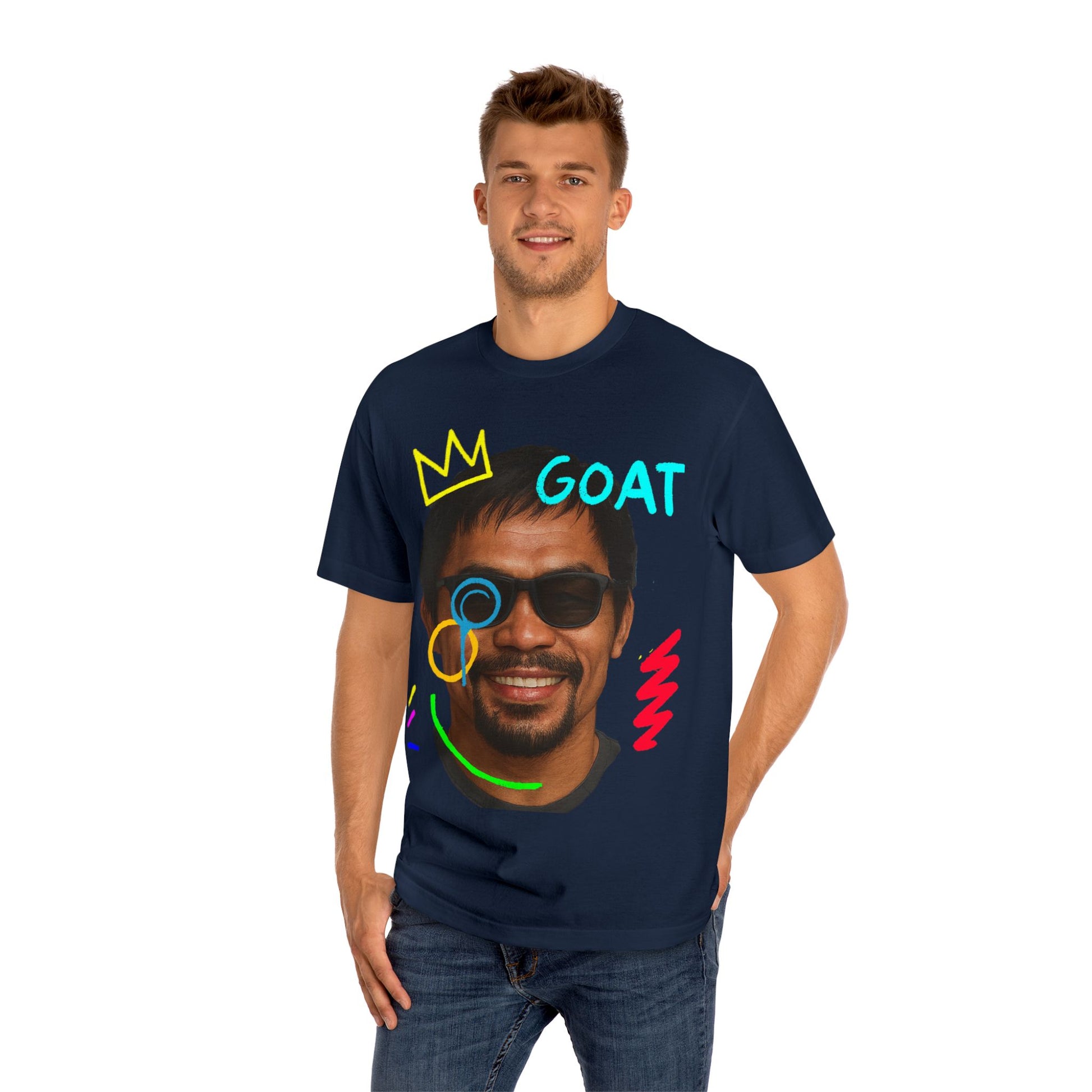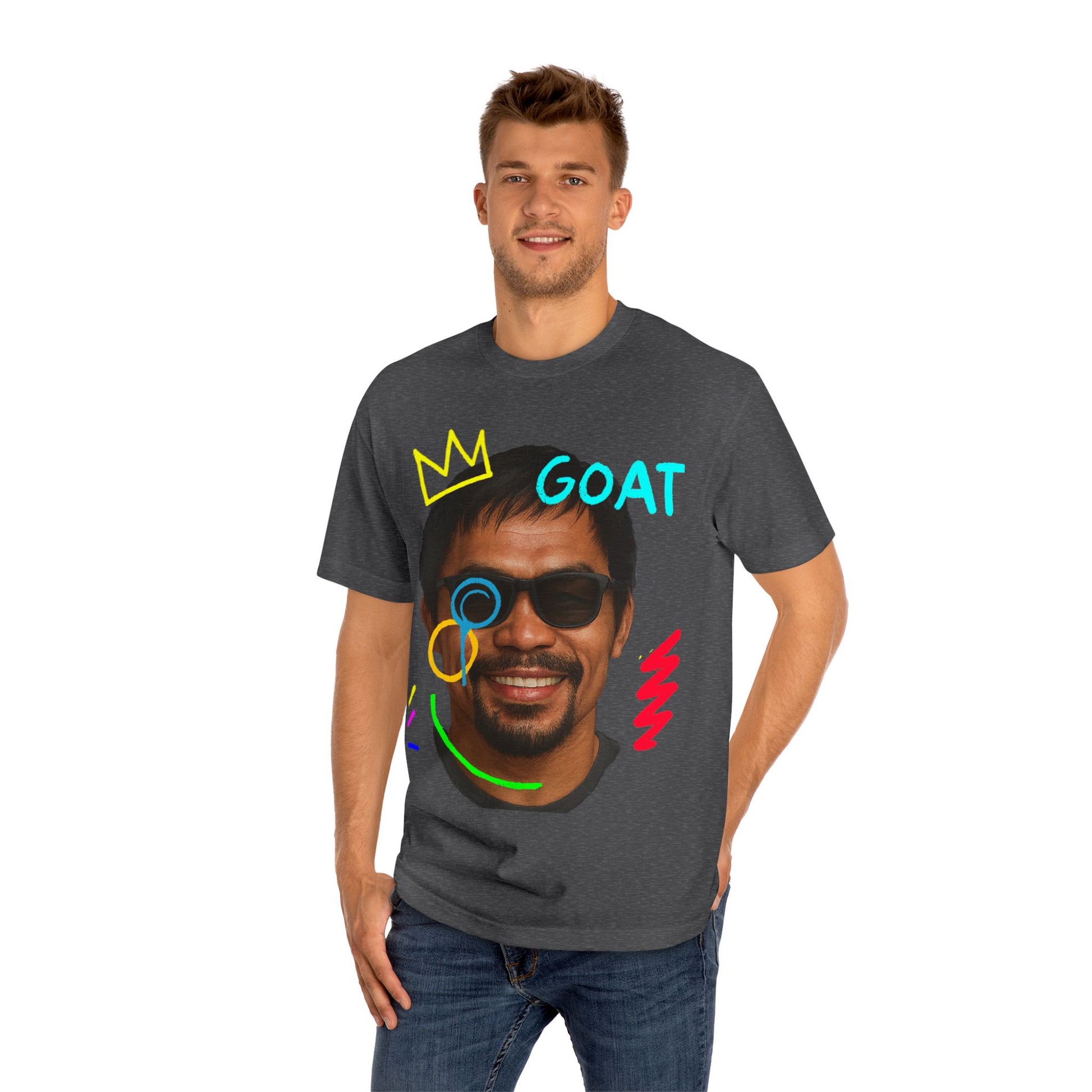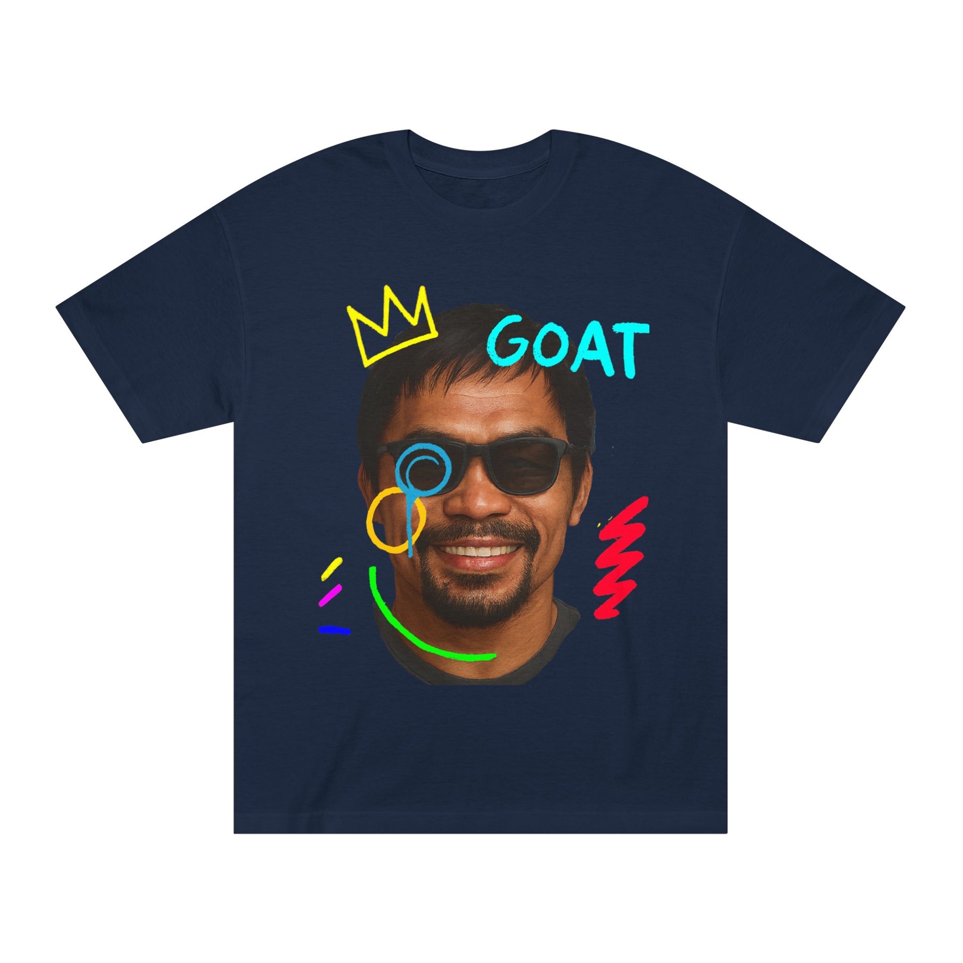 This classic tee brings bold, playful energy to everyday wear. The charcoal canvas showcases a vibrant, hand-drawn style portrait with neon doodles — crowns, squiggles and colorful accents — that read like a celebratory street-art vibe. The result is casual, loud, and joyful: a shirt that sparks conversation and brightens a simple outfit. It sits comfortably in a classic fit so it layers easily under jackets or stands alone with jeans for a relaxed, confident look.